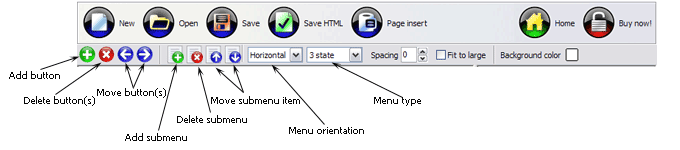 Delete button(s) - to delete selected submenu item(s). Is inactive if no button is selected.